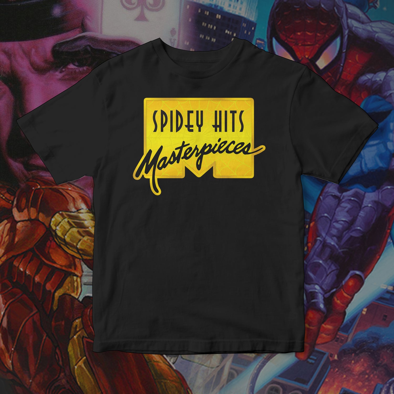 Celebrate the artistry of Masterpieces with the Spidey Hits Masterpieces T-shirt!